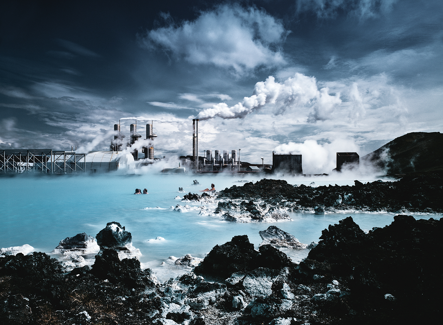 This is the Blue lagoon in Iceland and is where this Geo thermal power station is situated. It generates power by using underground heat.