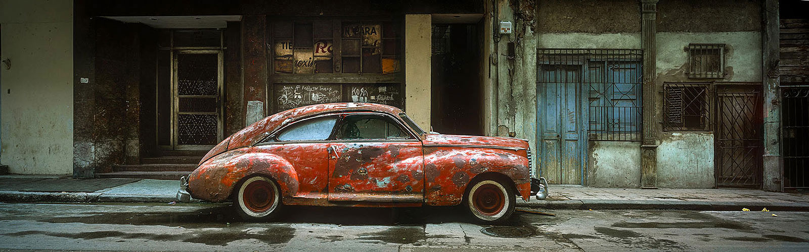 Havana streets, photographed with a wide format camera using 120 medium format roll film.