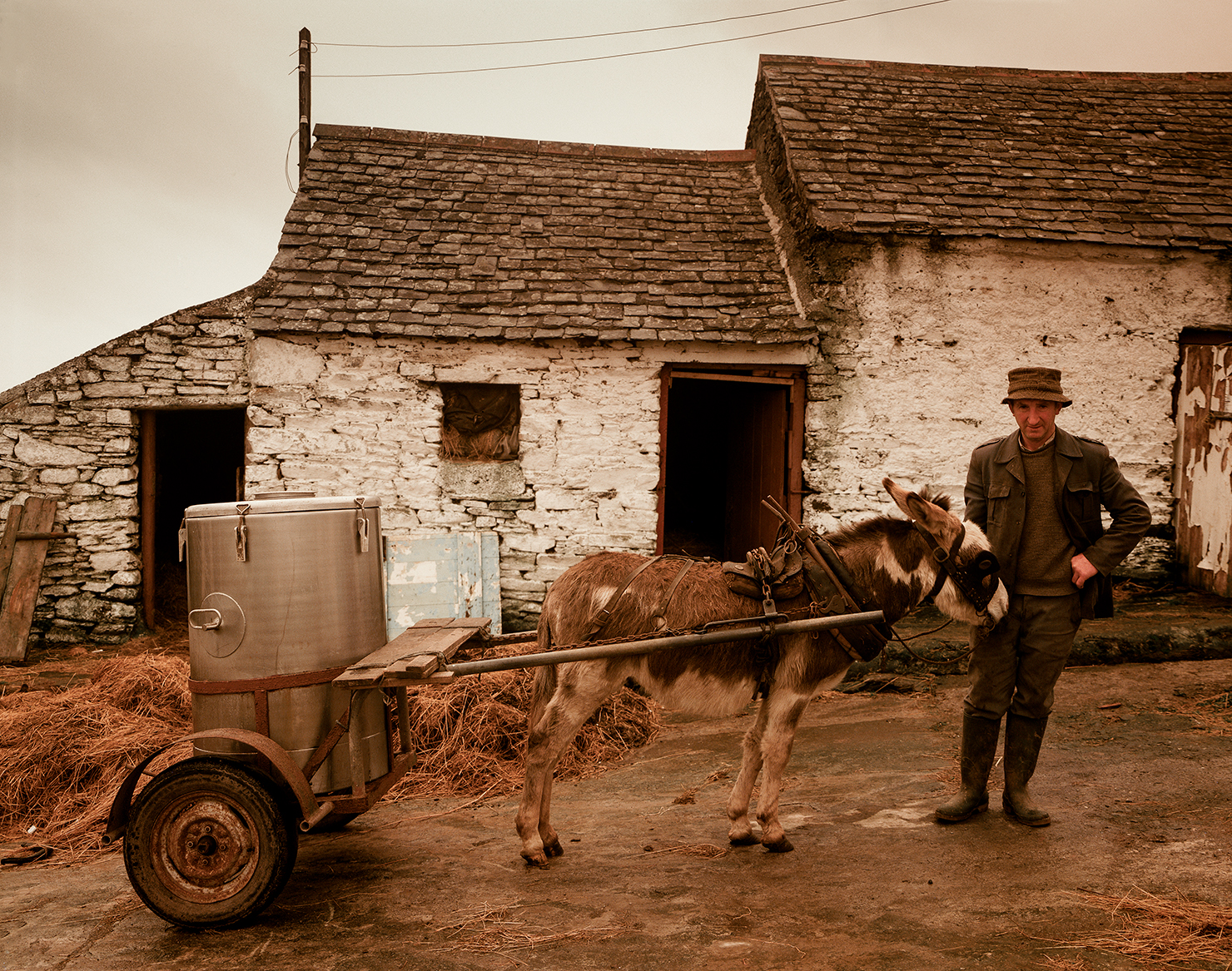 This farmer had no tractor or means of transport so used his Donkey to take the milk he produced on the farm to the local market.
